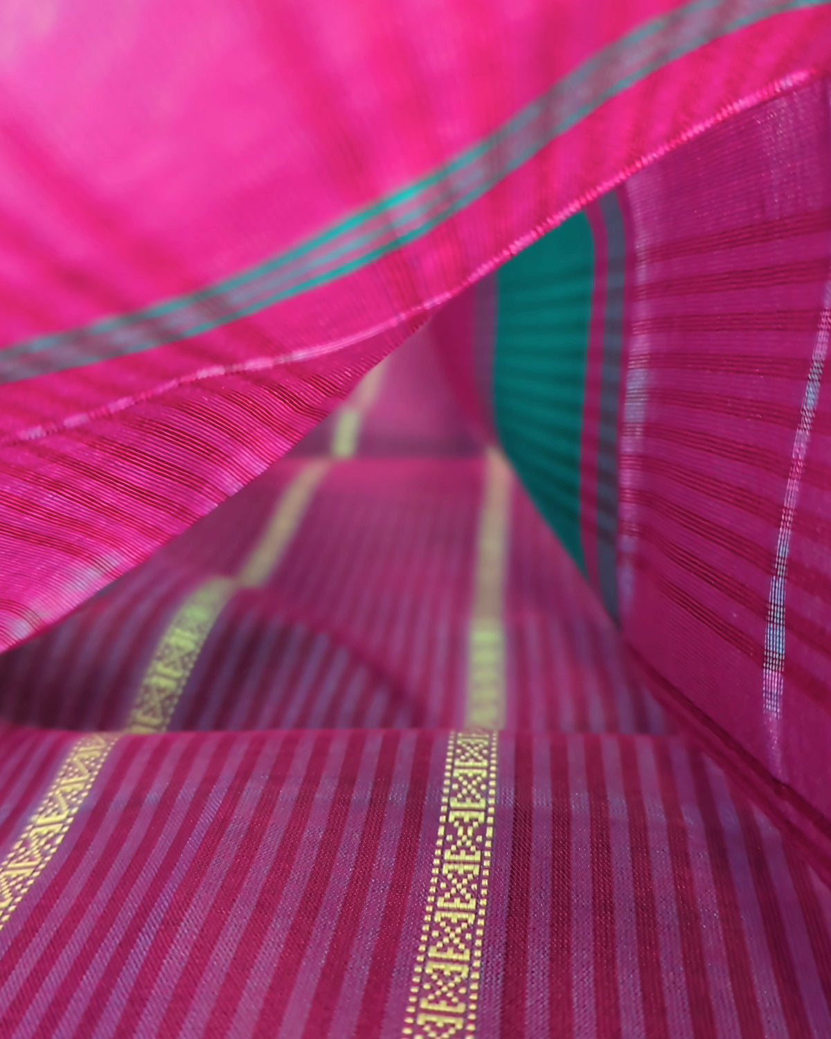 Our beautiful sarees are all original Vimor designs that are hand woven in pure silk and cotton.